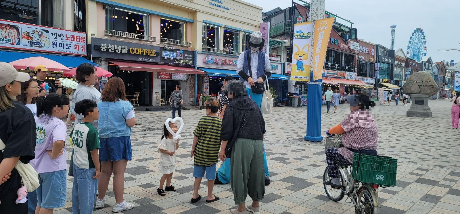 긴 다리 아저씨가 아이들한테 풍선으로 하트 만들어서 주셔서 아이들이 너무 기뻐하는 모습이었습니다.