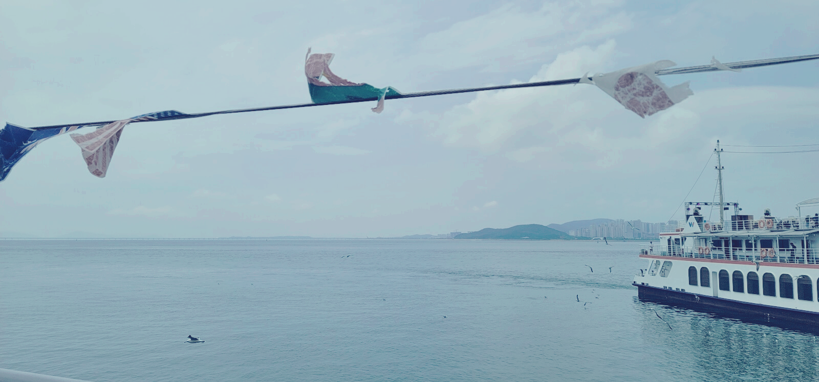 푸르른 바다위로 드디어 유람선이 대기 손님들을 태우고 출발을 하고 있었습니다.